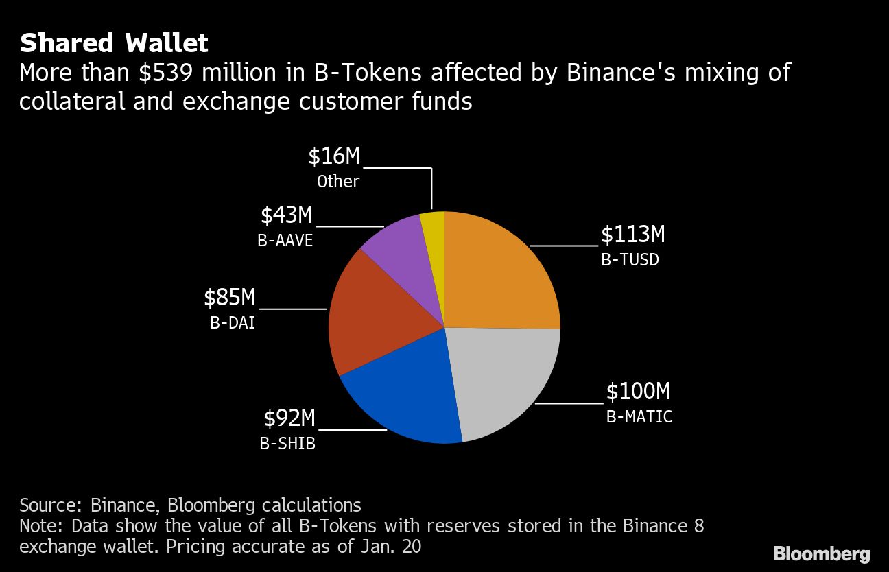 “‘Binance 8' is an exchange cold wallet. Collateral assets have previously been moved into this wallet in error and referenced accordingly on the B-Token Proof of Collateral page,” a Binance spokesperson said in a statement to Bloomberg News in response to questions on the matter. “Binance is aware of this mistake and is in the process of transferring these assets to dedicated collateral wallets.”