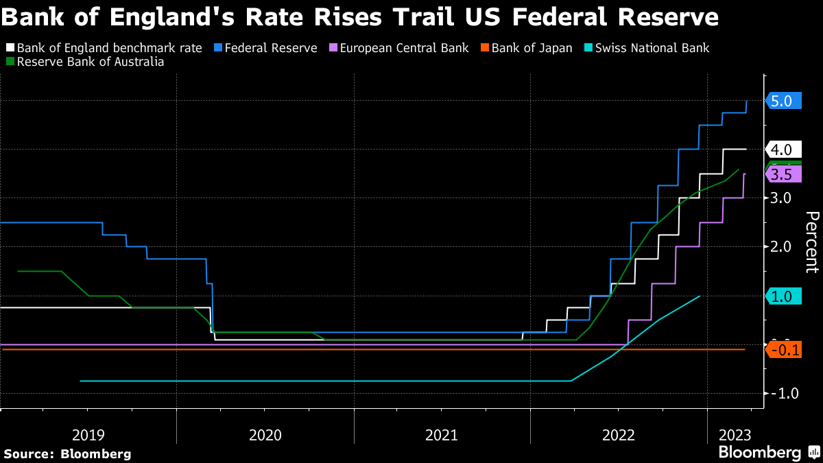 Policy makers at the UK central bank led by Governor Andrew Bailey will publish their decision at 12 p.m. in London on Thursday. They're following a decision last week by the European Central Bank and US Federal Reserve on Wednesday to keep raising rates despite market concerns.