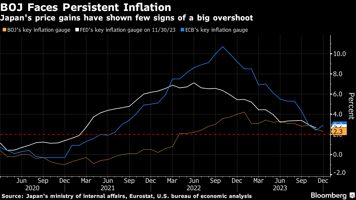 The policy decision was unanimously expected by BOJ watchers surveyed by Bloomberg. A major earthquake on New Year's Day and a deepening funding scandal engulfing Prime Minister Fumio Kishida's ruling party made this an inopportune time for Japan's first rate hike since 2007.