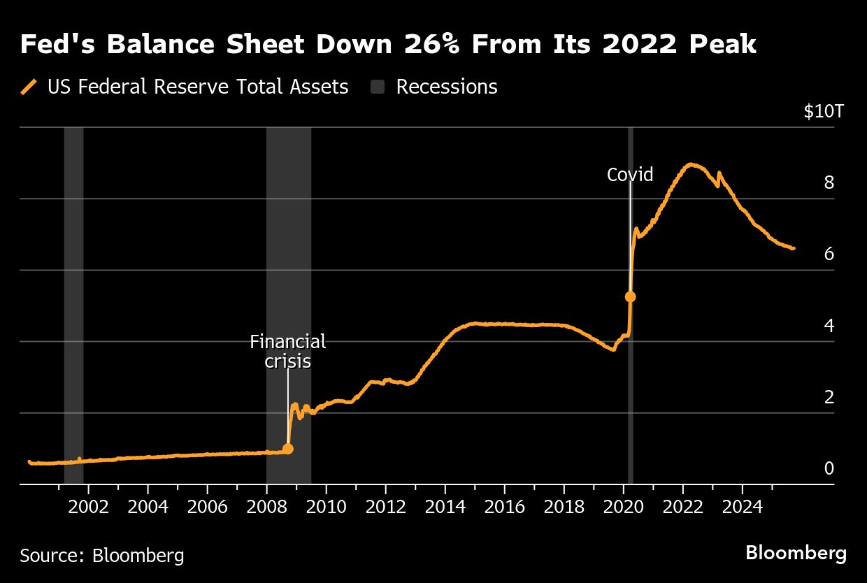 The Fed's balance sheet ballooned to nearly $9 trillion following the pandemic, when the Fed bought large amounts of Treasuries and MBS in a bid to support markets and the economy. It has dropped to $6.6 trillion since then, but the Fed has in recent months slowed the pace at which it's shrinking the balance sheet, fearful of draining too many reserves from the financial system and causing stress in markets.