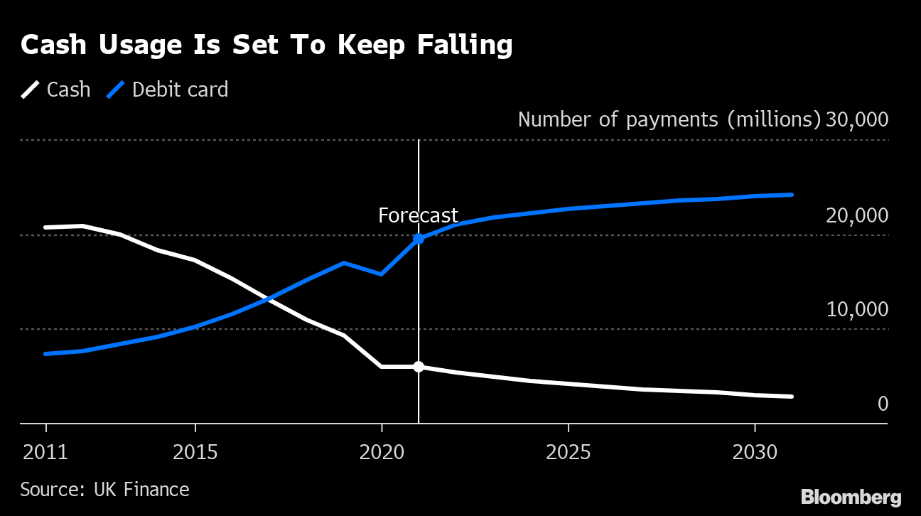 The move suggests British authorities want to maintain some government control over the way money is used as consumers step away from using cash in day-to-day transactions, favoring card-based and mobile payments instead.