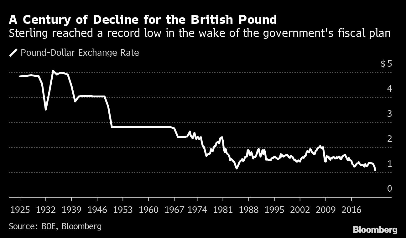 In the week since the government unveiled the biggest tax cuts since 1972 with scant detail of how they will be financed, the pound has crashed to its lowest-ever level against the dollar, the cost of insuring British government debt against the risk of default has soared to the highest since 2016, and the Bank of England has been forced to intervene amid concerns about the nation's pension funds.