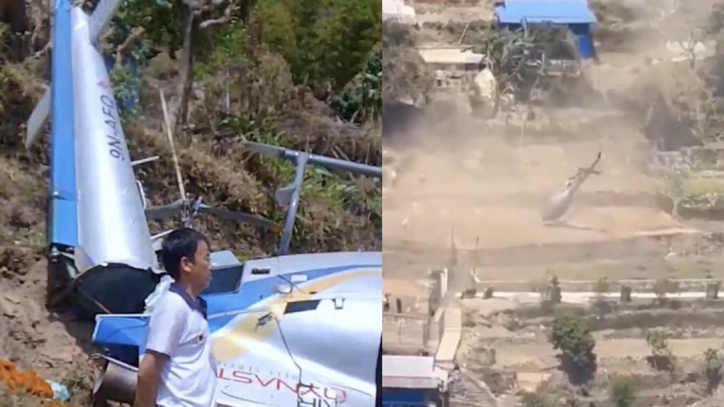 - A helicopter crashed while attempting to land in farmland in Nepal’s Khotang district on Wednesday.