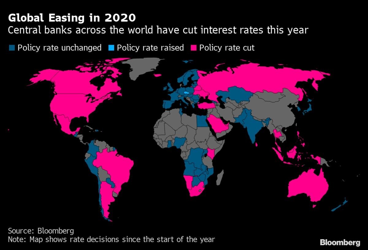(Bloomberg) -- Global central bankers are cutting interest rates beyond their financial crisis-era lows, underscoring the hit to economies from the coronavirus even as investors question the healing powers of monetary policy.