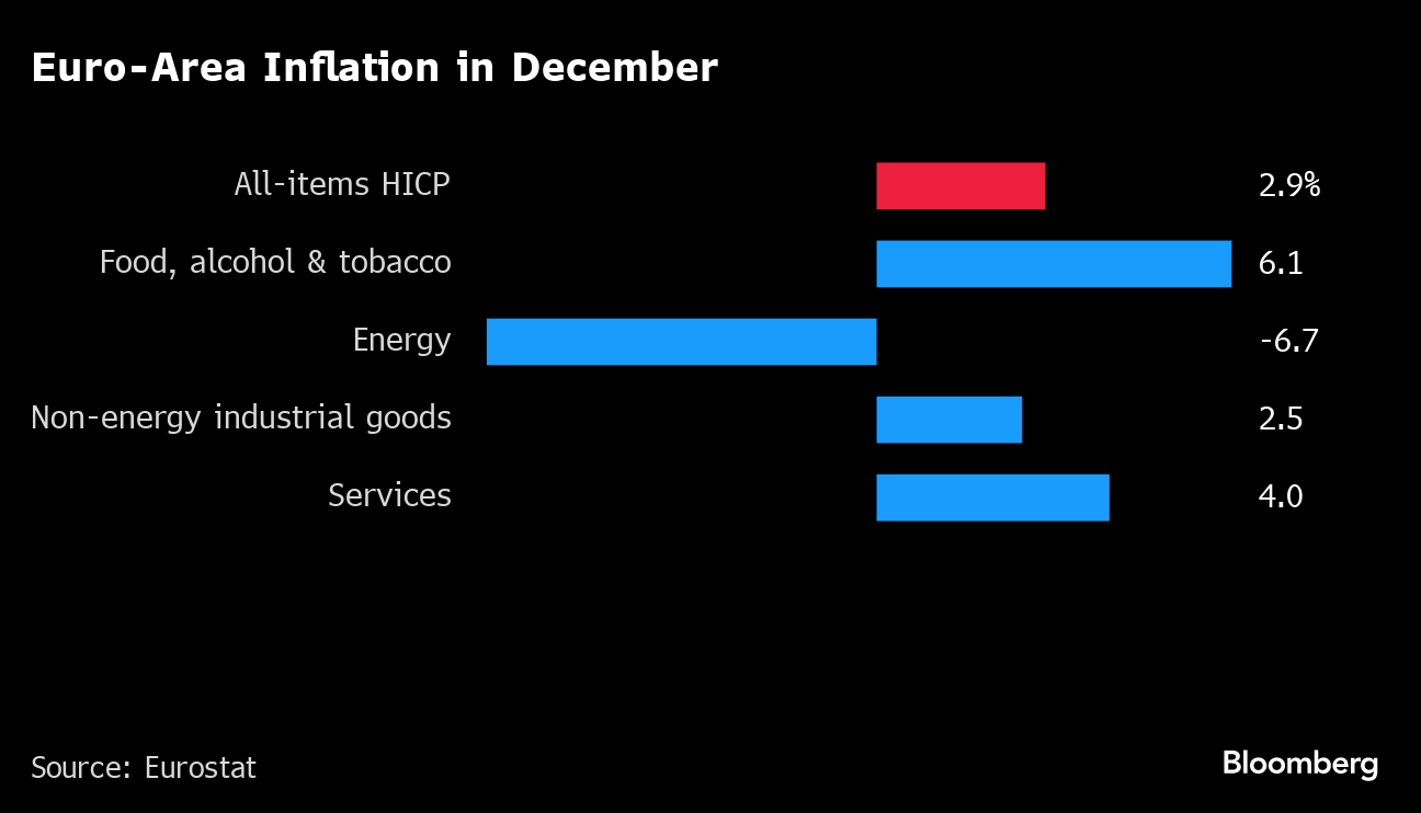 Euro-zone inflation picked up in December, highlighting the rocky path back to 2% foreseen by the European Central Bank as governments remove support for lofty energy costs.