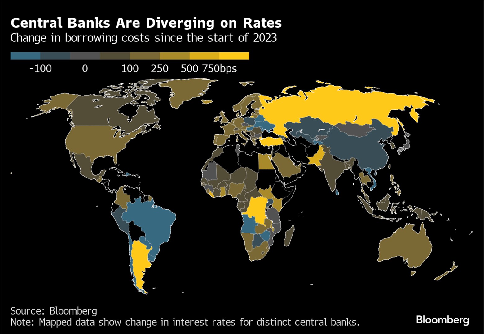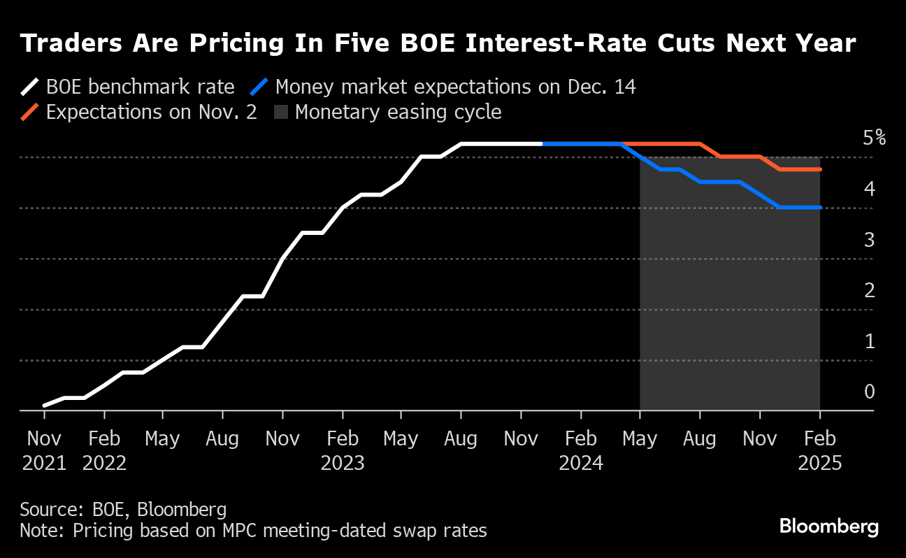 Officials in the US are prepared to cut interest rates in 2024, while those in Europe said they'd step up their exit from pandemic-era stimulus. Meantime, policymakers in the UK were more hawkish, with several still supporting a rate hike at Thursday's meeting.