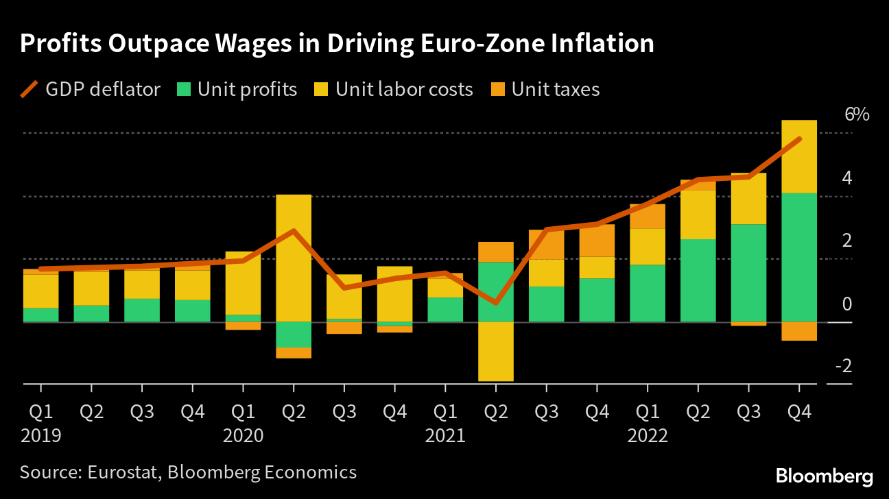 So-called greedflation is threatening to complicate efforts to rein in consumer-price growth, meaning the European Central Bank may have to do more to hit its 2% target — just as officials flag that the end of their most aggressive cycle of interest-rate hikes is approaching.