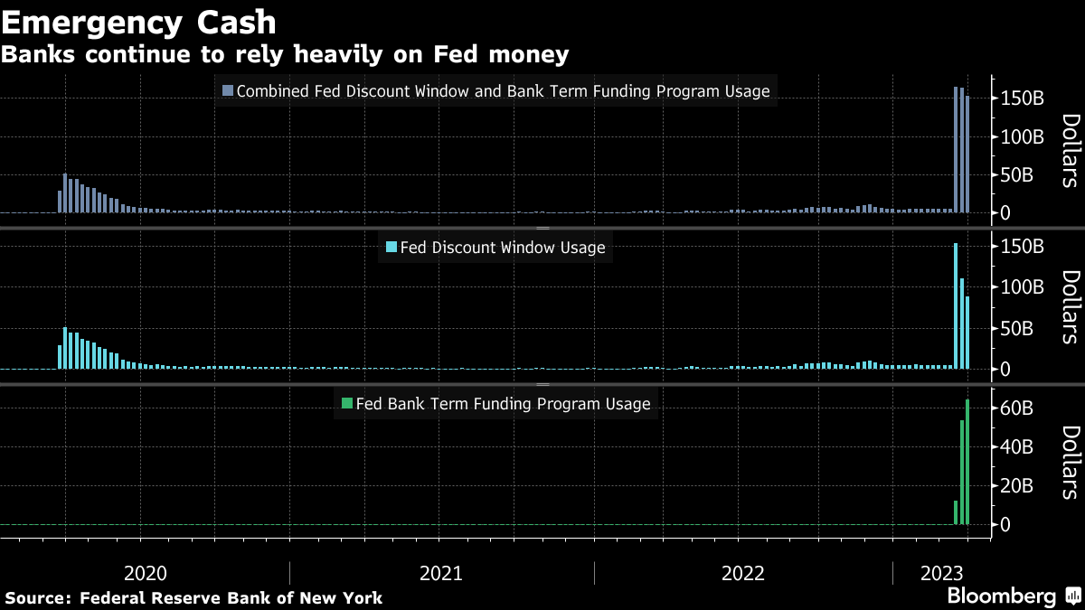 Banks reduced their borrowings from two Fed backstop lending facilities in the most recent week, a sign that liquidity demand may be stabilizing. US institutions had a combined $152.6 billion in outstanding borrowings in the week through March 29, compared with $163.9 billion the previous week.