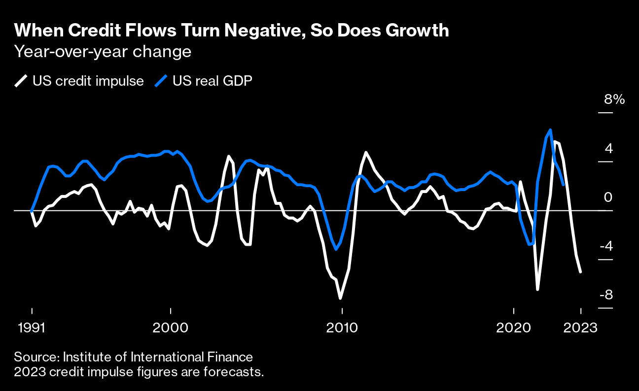 The biggest banking scare since the 2008 financial crisis will ricochet through the economy for months as households and businesses find it harder to gain access to credit. That's the scenario facing the US after the collapse of three regional lenders, and a giant global one, over an 11-day span, according to several economists.