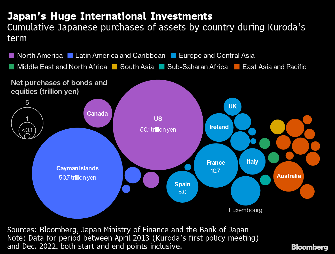 Bank of Japan Governor Haruhiko Kuroda changed the course of global markets when he unleashed a $3.4 trillion firehose of Japanese cash on the investment world. Now Kazuo Ueda is likely to dismantle his legacy, setting the stage for a flow reversal that risks sending shockwaves through the global economy.