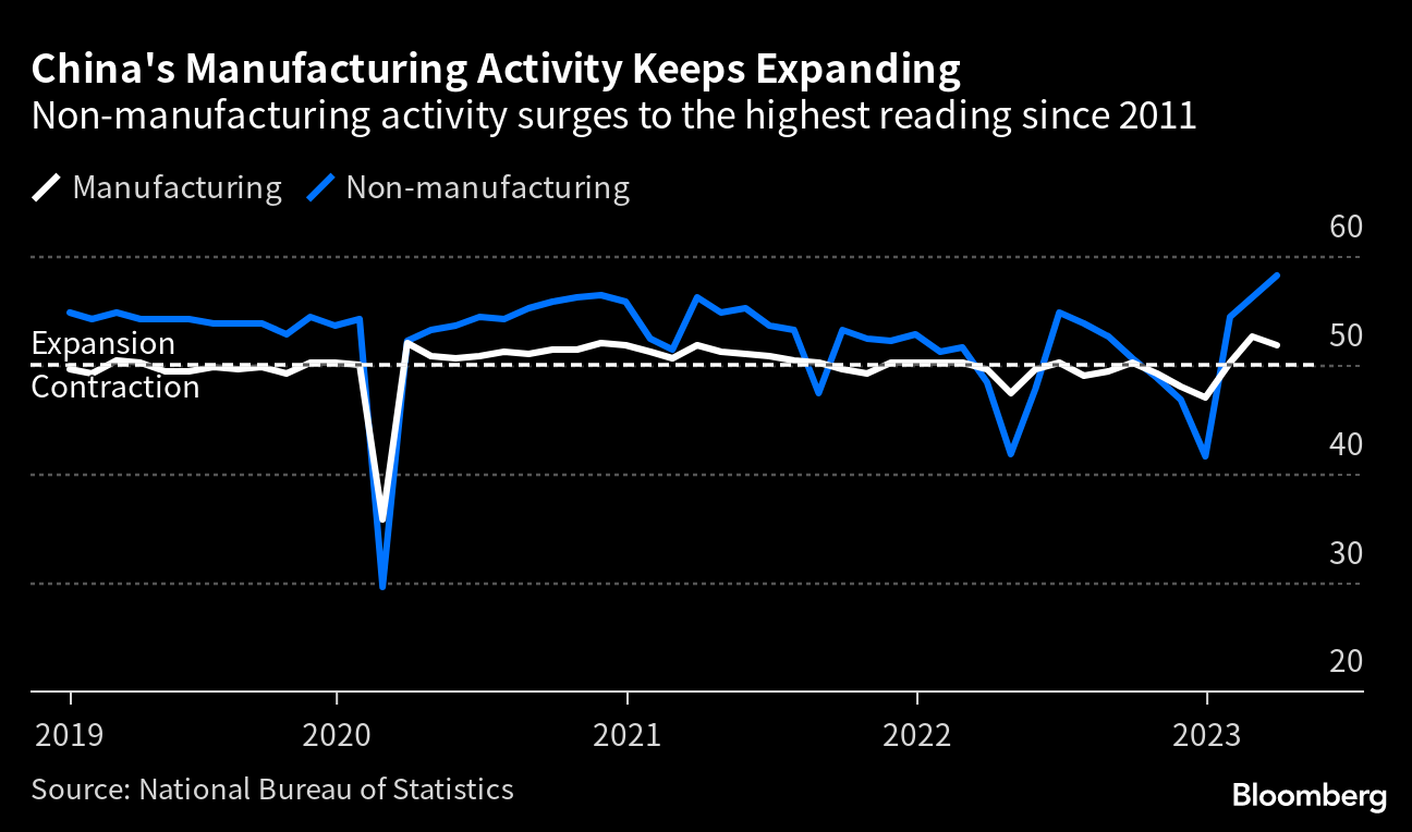 China's recovery gained traction in March, showing the world's second-largest economy is strengthening after stringent pandemic restrictions were dropped and Covid infection waves eased.
