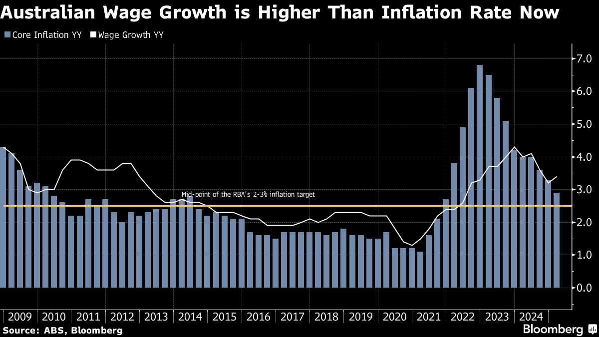 Australia's wage growth was stronger than expected in the first three months of the year, highlighting the nation's tight labor market that has been underpinned by a wave of public-sector hiring. The data did little to change market expectations for an interest-rate cut next week.
