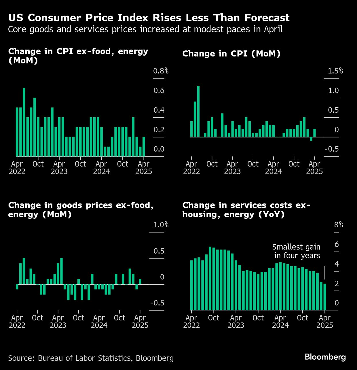 While tariffs are widely expected to boost inflation, that hasn't yet shown up in the data. US consumer prices rose by less than forecast, while a report on producer prices indicated businesses absorbed much of the costs from the new levies as they took effect last month.