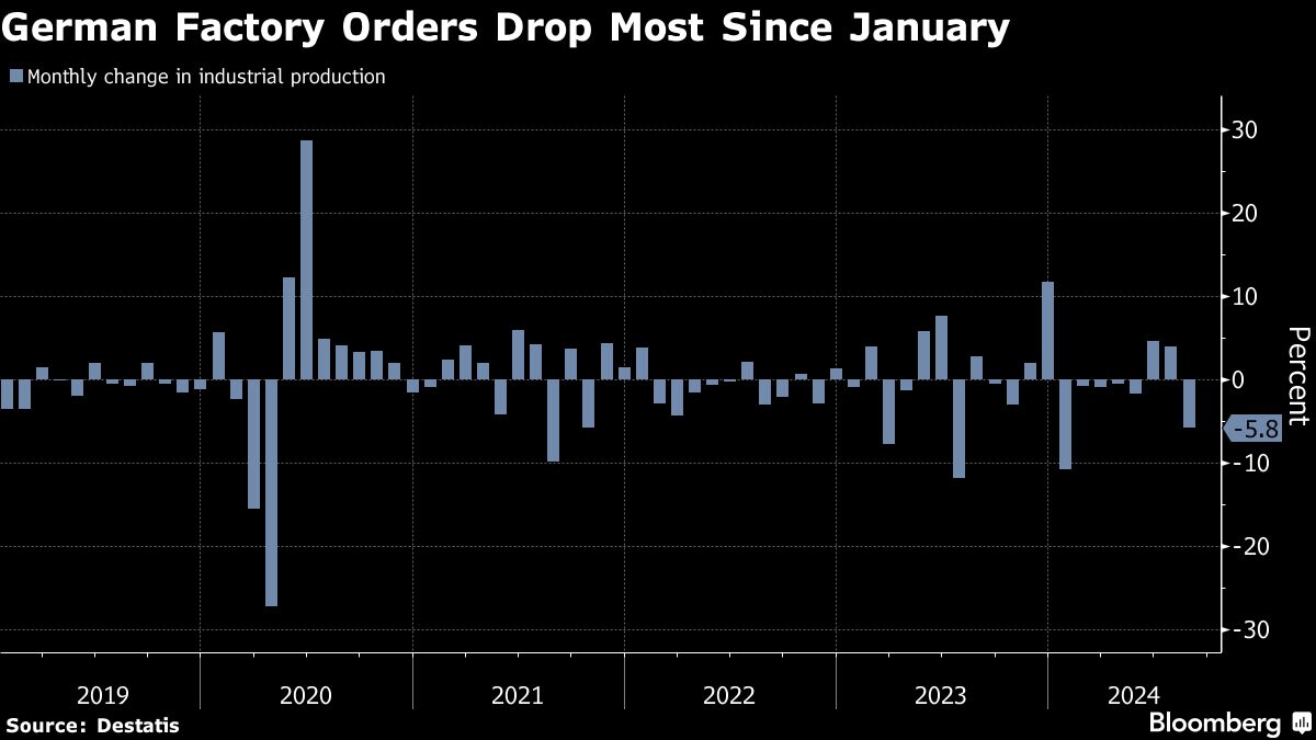Factory orders in Germany plummeted in August, marking yet another setback for industry in a year when Europe's biggest economy has failed to deliver a much-awaited recovery.