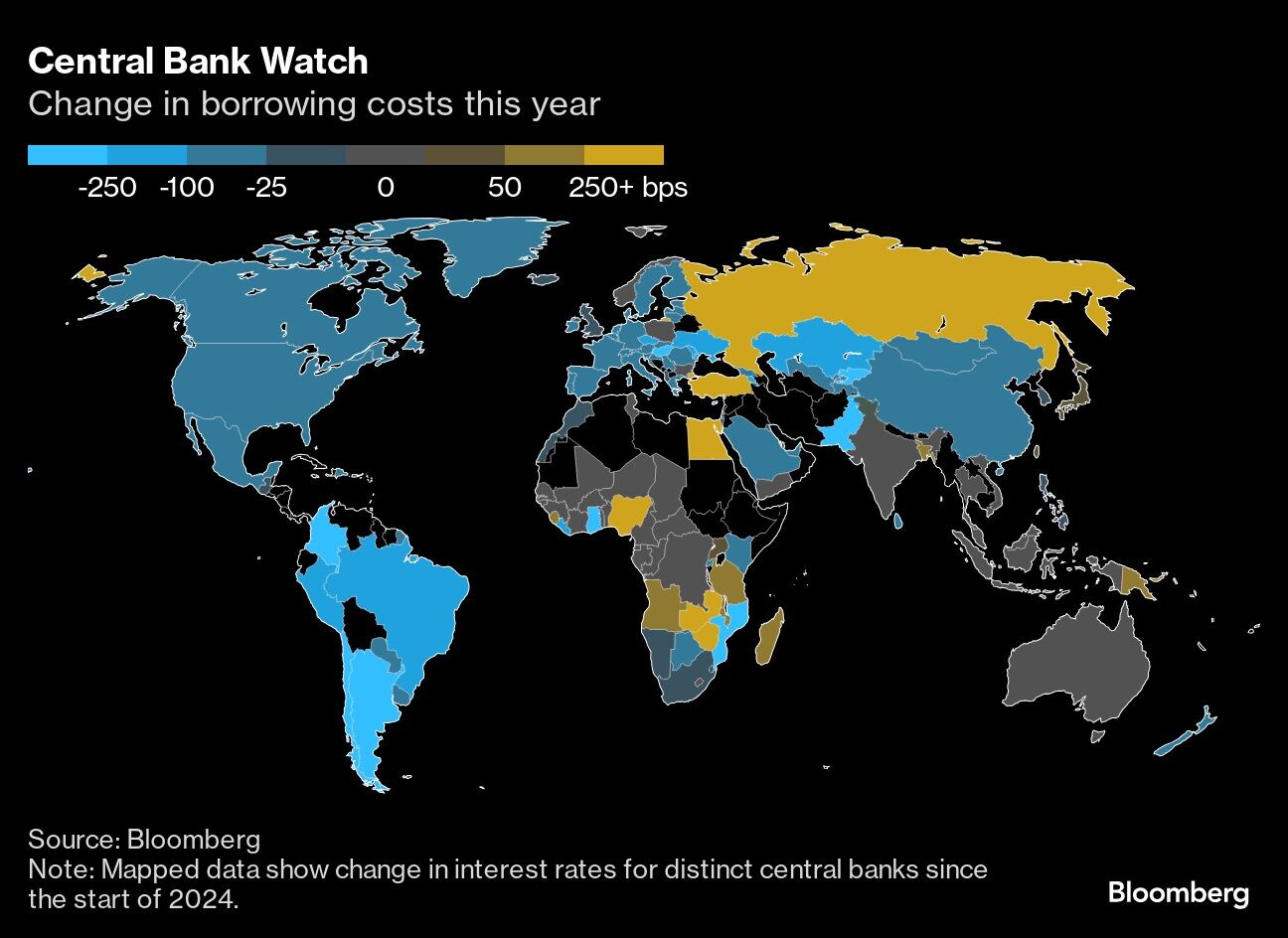New Zealand's central bank stepped up the pace of easing as policymakers become more concerned about the economic slowdown. The Bank of Korea cautiously reduced rates, while Uganda and Kenya also eased. Uruguay, India, Israel, Serbia and Kazakhstan held. Peru surprised by holding rates steady.