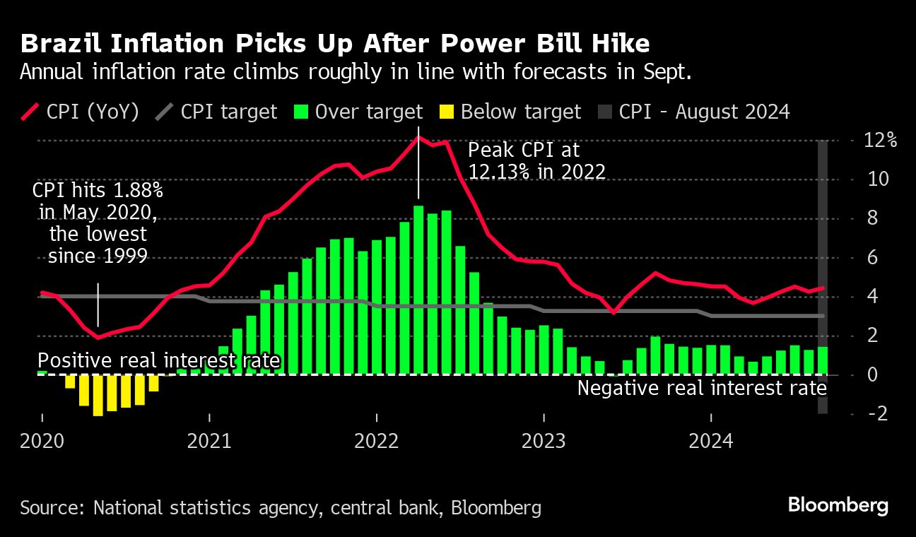 Underlying US inflation rose more than forecast in September, representing a pause in the recent progress toward moderating price pressures. The higher-than-expected inflation figures, along with last week's blowout US jobs report, will likely amplify the debate whether the Federal Reserve will opt for a small interest-rate cut next month or pause after a large September reduction.