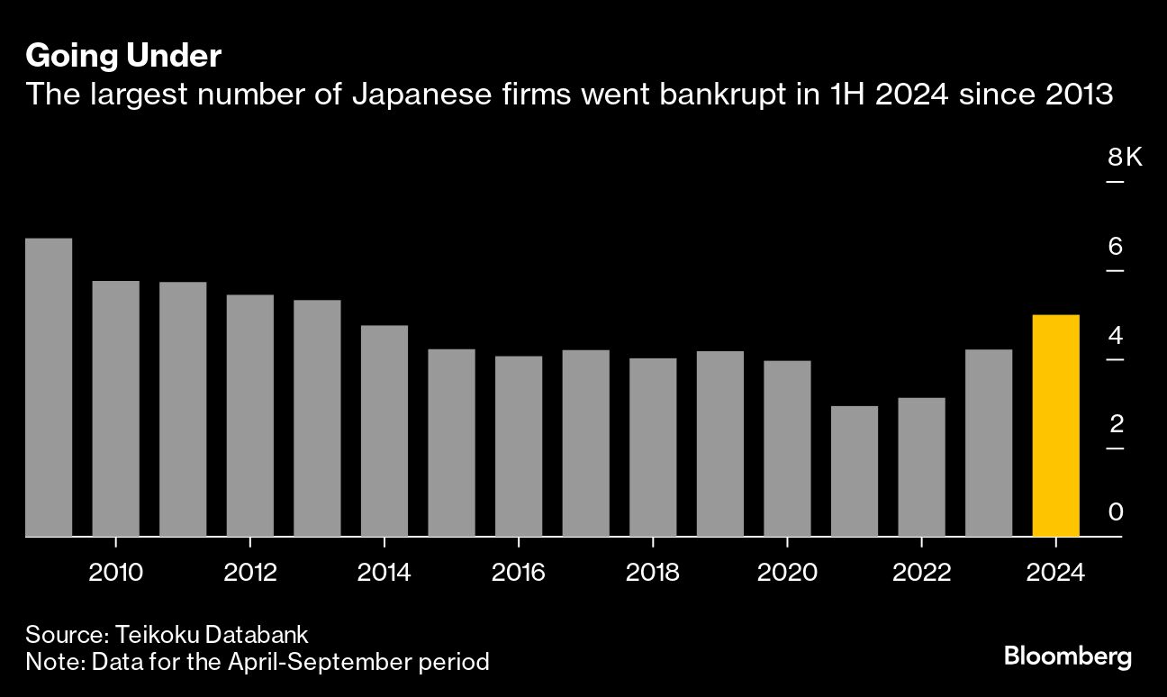 Japan saw the highest number of bankruptcies since 2013 in the six months through September, as companies were increasingly hit by rising costs. A record 472 out of the 4,990 firms cited inflation as the main reason they went bankrupt, the report showed. Construction, manufacturing and retail were among the sectors that had the highest number of cost-driven bankruptcies, according to the report.