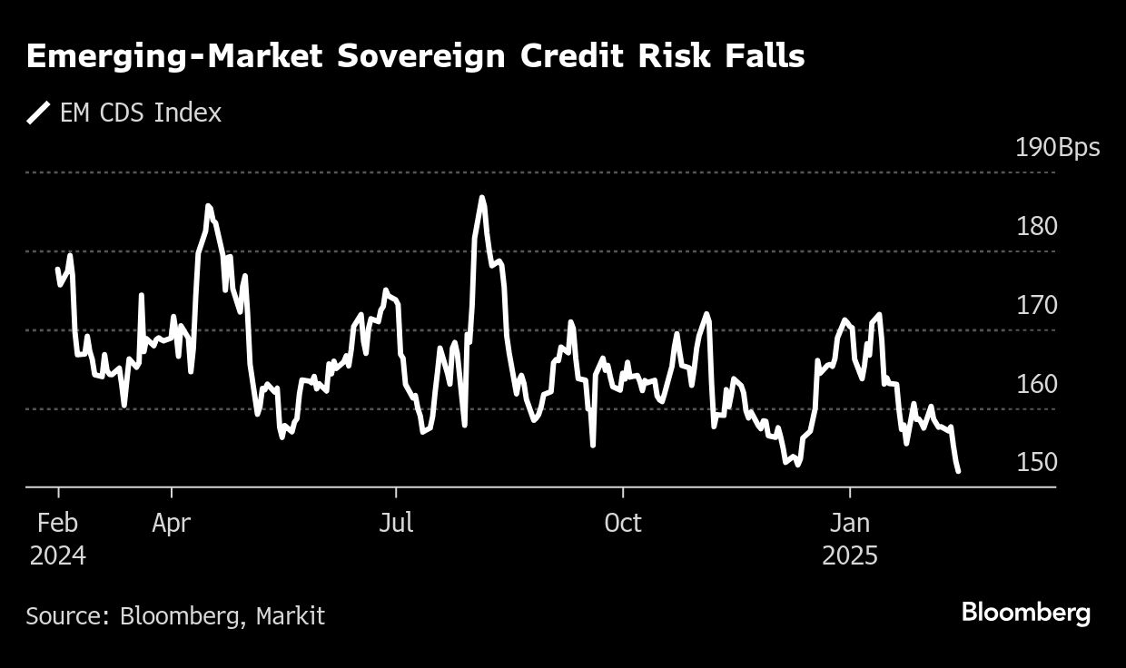 Emerging-market stocks headed for a fifth week of gains as traders bet on positive outcomes from negotiations on US tariffs and a way out from Russia's war in Ukraine. Risk appetite has been increasing on the expectation that the eventual impact of US President Donald Trump's proposed trade tariffs will be blunted by the time international talks and other delays are over.