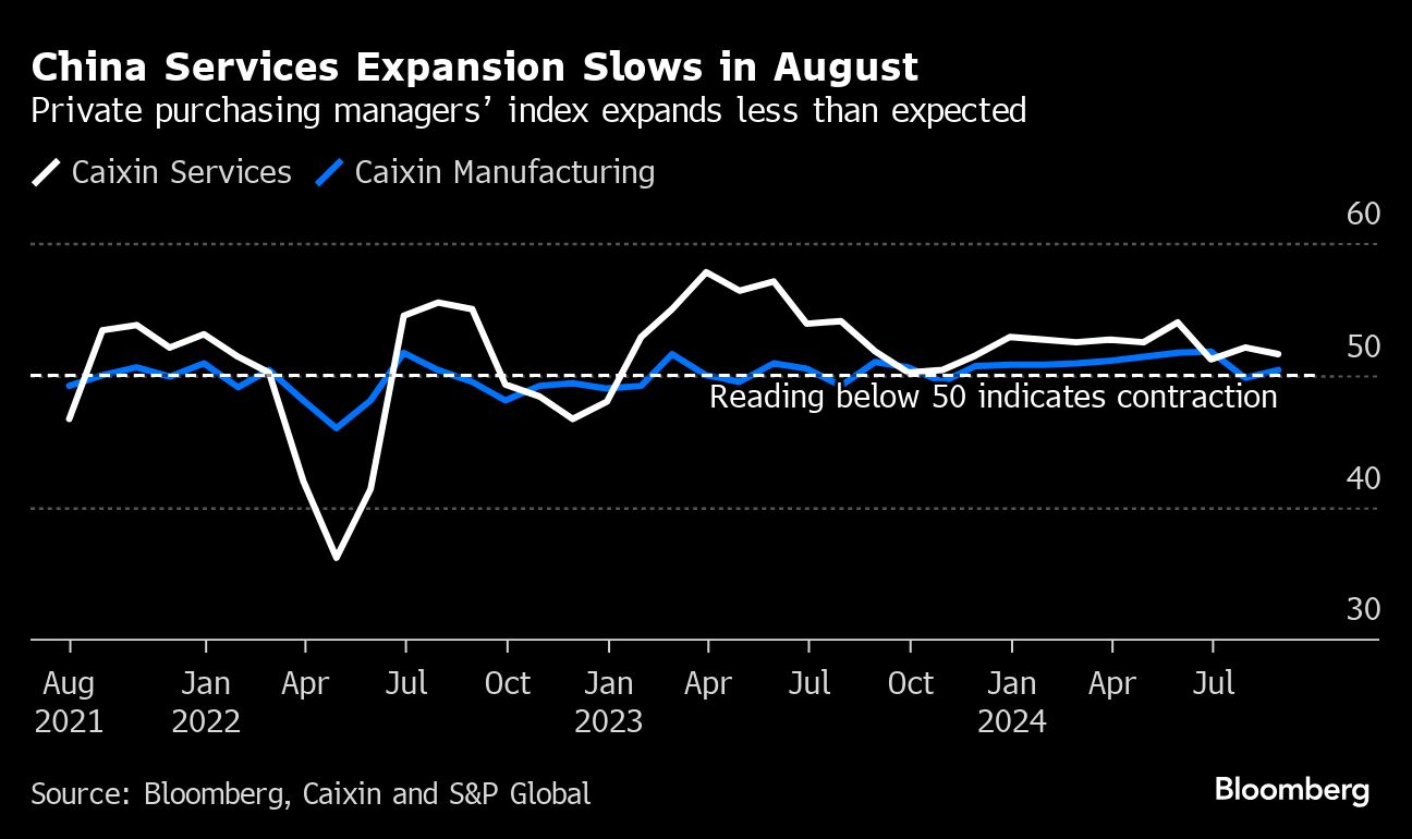 China's services activity expanded less than expected, adding to worries over the economy's health. The findings add to a picture of an economy at risk of stalling. Official data published last weekend showed service industries from restaurants to tourism near contraction during the last month of summer.