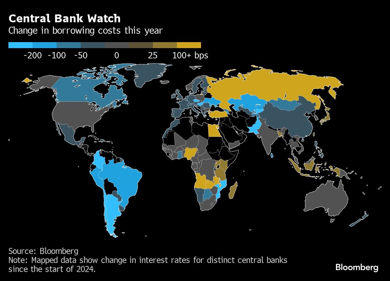 The Bank of Canada lowered interest rates for a third straight meeting. — Chile cut. Poland's central bank left borrowing costs unchanged, as did Malaysia and Egypt.