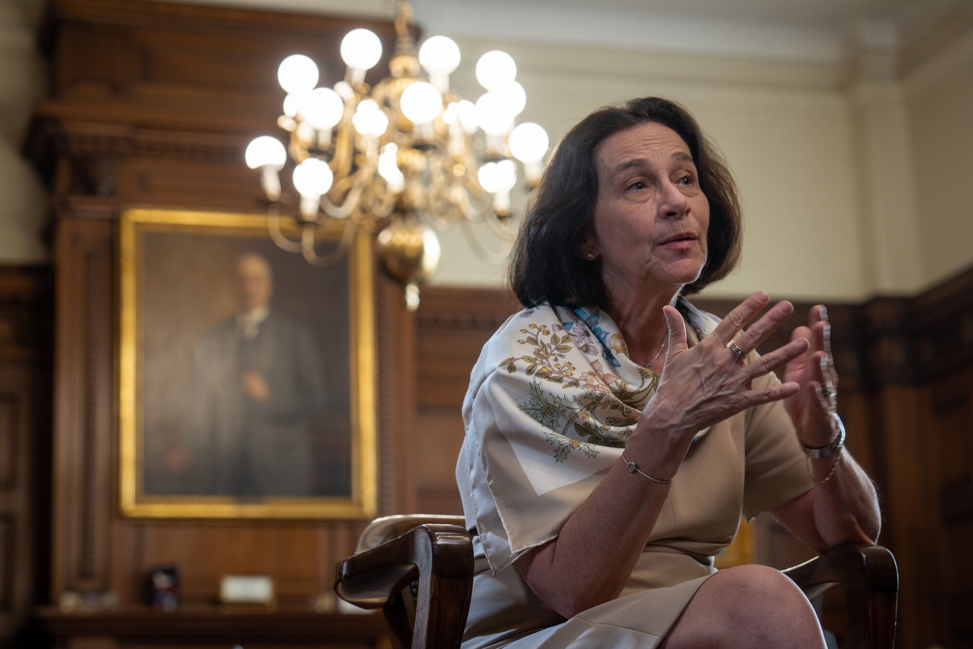 Rosanna Costa, president and governor of Central Bank of Chile, during a Bloomberg Television interview in Santiago, Chile. (Photographer: Tamara Merino/Bloomberg)