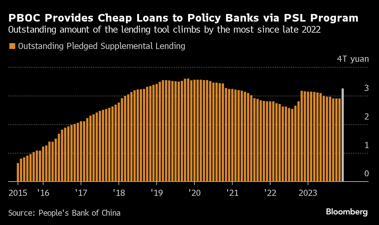 Bloomberg News reported in November that policymakers were planning to provide 1 trillion yuan in low-cost central bank funding in phases to help programs focused on affordable housing and the renovation of urban villages. Officials were considering using the PSL program or special loans.