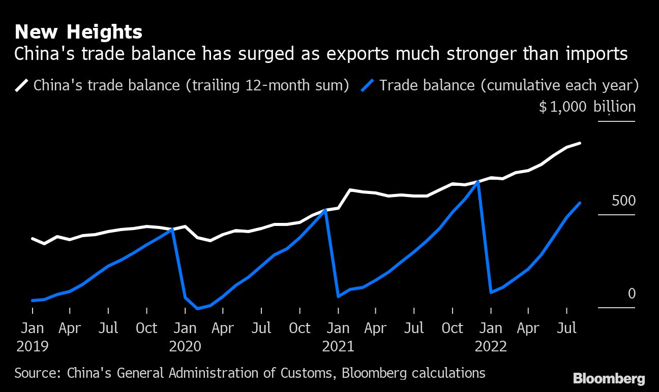 However, China's export growth could be losing steam as surging inflation across the globe and an energy crisis weakens global demand. Exports last month rose at the slowest pace since April when the Shanghai lockdown disrupted shipping.