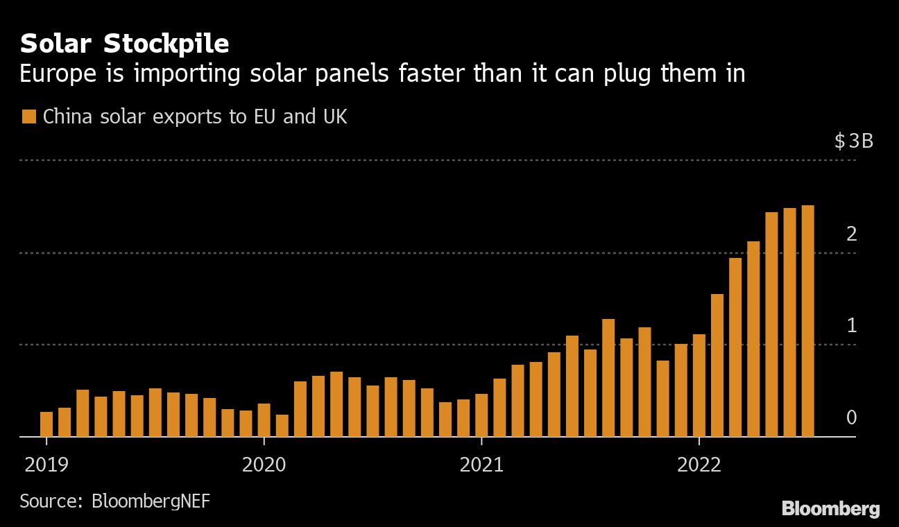 China's solar sales to Europe have soared this year as the continent wrestles with an unprecedented energy crisis. But tens of thousands of the panels are sitting unused in warehouses because there aren't enough engineers to install the rooftop modules.