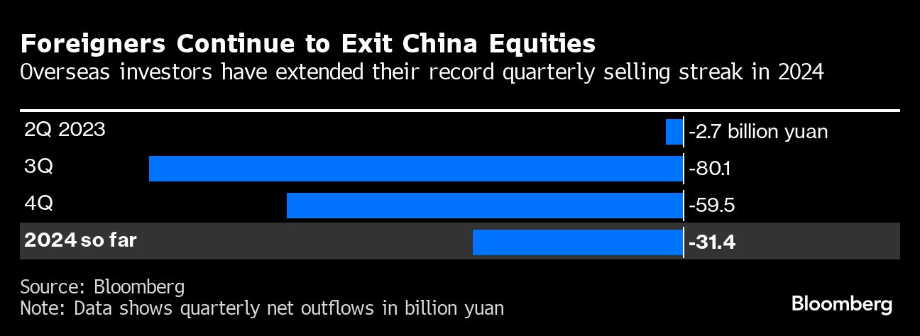 The Hang Seng China Enterprises Index has already lost 11% in 2024. Coming after a record four-year losing streak, the slump is reinforcing a structural shift that's seeing everyone from active money managers to passive funds turn their back on the world's second-largest stock market.
