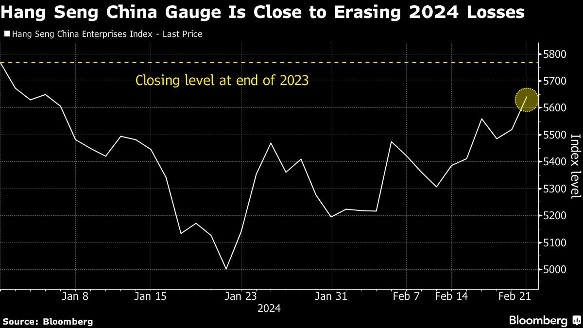 The HSCEI gauge has seen a trough-to-peak gain of 13%, the biggest since the reopening rally faltered at the start of last year. Earlier this week, lenders delivered a bigger-than-expected cut to a key mortgage reference rate. That came as the securities regulator said it will take heed of all suggestions from market participants and address their concerns promptly.