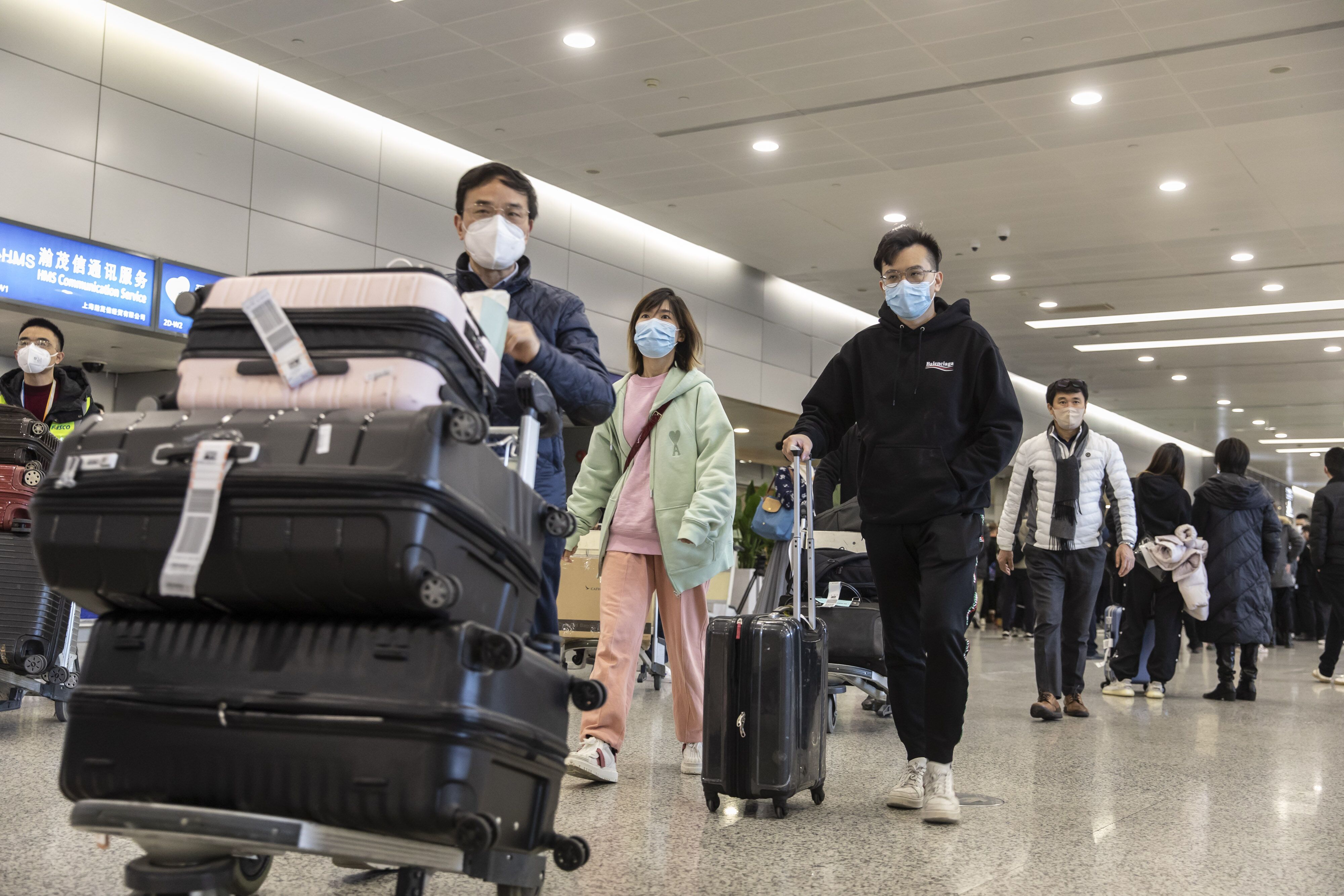 Passengers in the arrival hall for international flights at Pudong International Airport in Shanghai, China, on Sunday, Jan. 8, 2023. The reopening of China’s borders marks the end of Covid Zero, a strategy that left the world’s second-biggest economy isolated for three years and weighed heavily on the economy. Photographer: Qilai Shen/Bloomberg