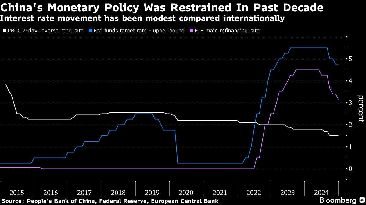 Similarly, although forecasts of 40 to 60 basis points of interest rates cuts next year mark a big step for the People's Bank of China, they're dwarfed by the Fed's 150-basis-point rate cut in response to Covid — or its decision to push rates to near zero from 4.5% in the span of a year in 2008 to deal with the Global Financial Crisis.