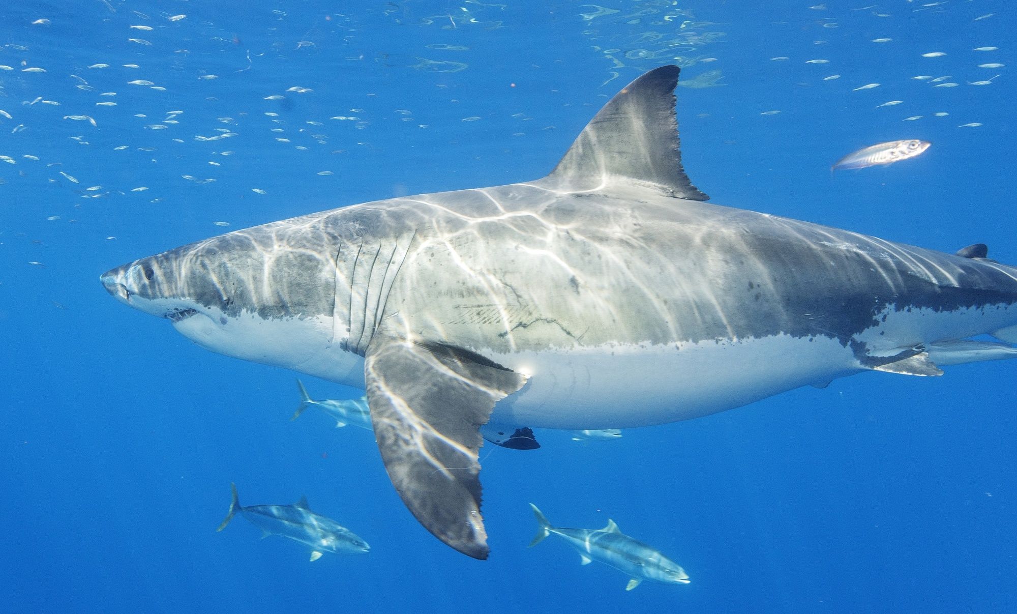 The most dangerous thing you're likely to encounter in British waters is raw sewage. And more important than hunting for great whites is figuring out how climate change is affecting sharks that already make their home in UK waters.