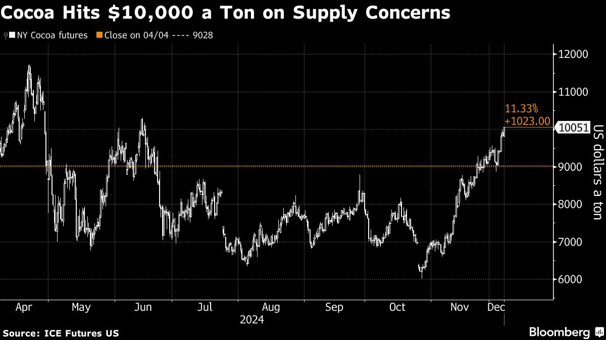 Cocoa Surges Back To $10,000 A Ton On Growing Supply Fears
