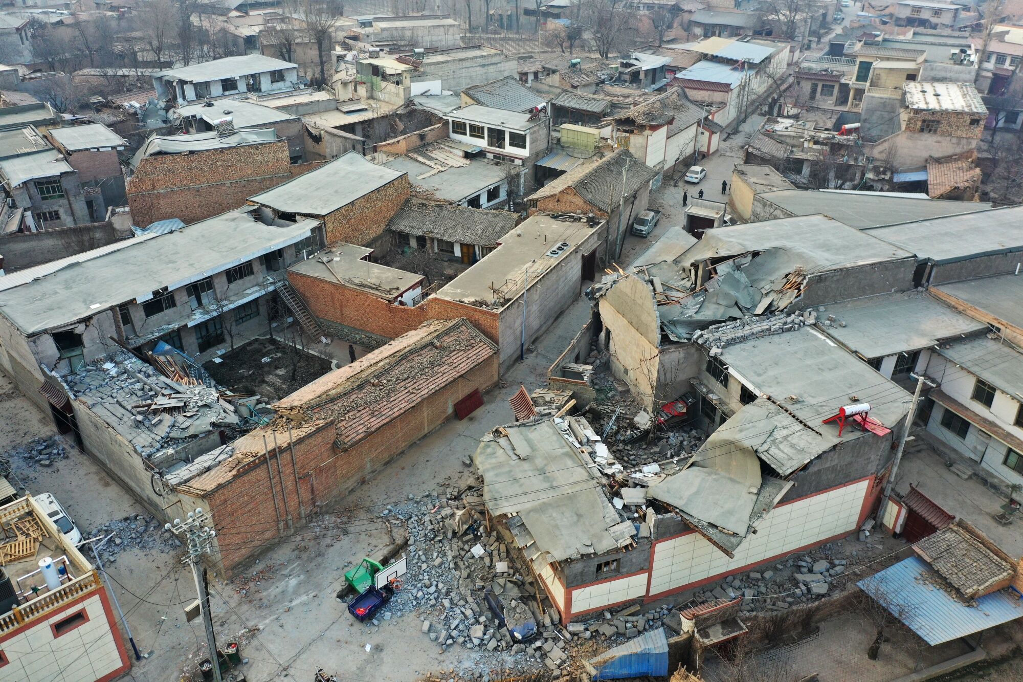 Videos and pictures on China's social media show brick homes turned to rubble and sections of roads crumpled. Others show food kitchens and tents set up after an estimated 155,000 homes in Gansu province were damaged.