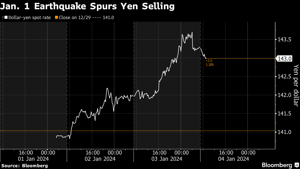 (Bloomberg) -- The yen is coming under renewed pressure as a powerful earthquake that hit Japan on New Year's Day makes it harder for the Bank of Japan to abolish negative interest rates.