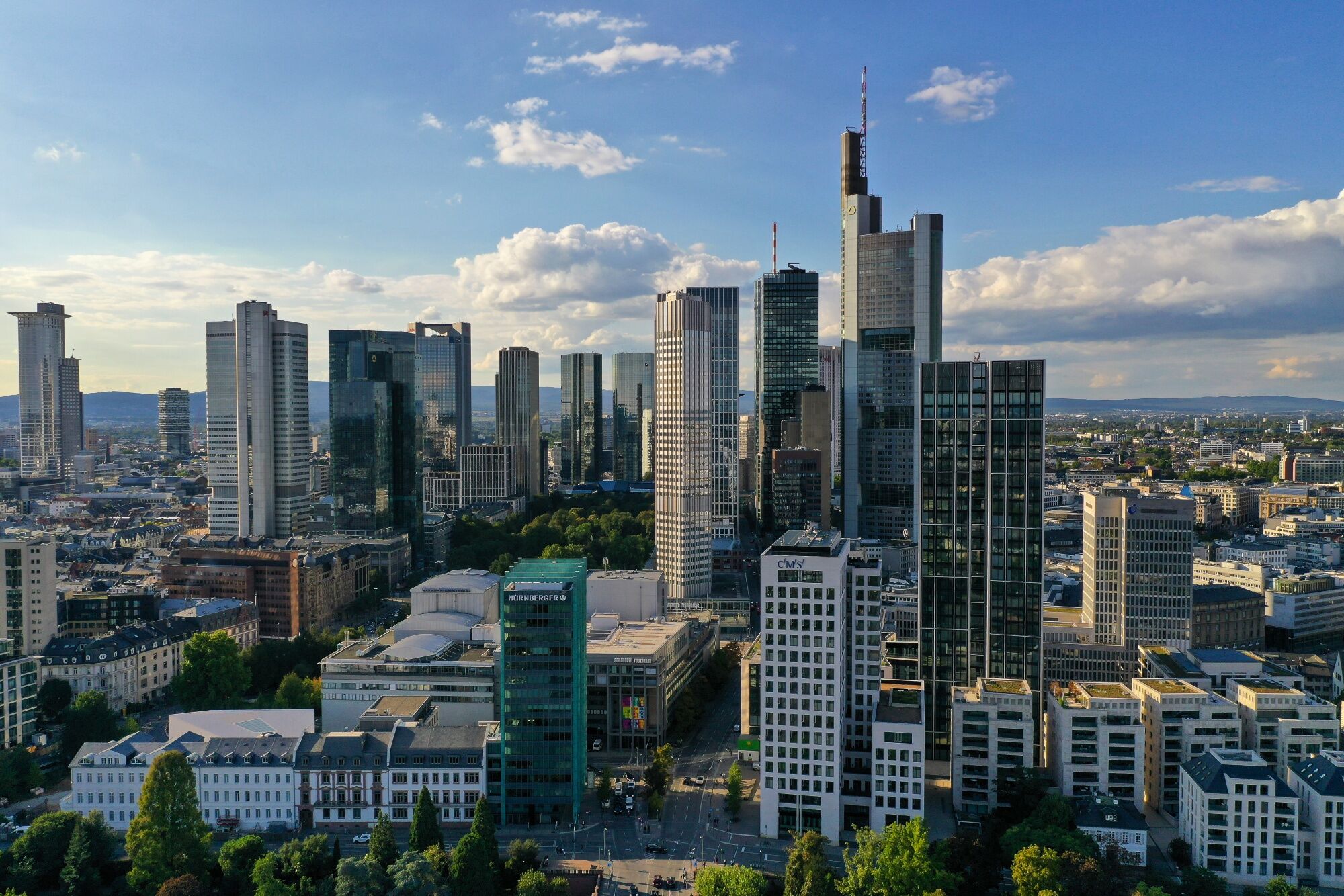 Skyscrapers stand on the financial district skyline in Frankfurt, Germany, on Wednesday, Sept. 2, 2020. Partly thanks to the government’s stimulus program, German activity has staged a strong rebound after collapsing in the second quarter, and companies have turned slightly more optimistic that it will continue to accelerate into next year. Photographer: Alex Kraus/Bloomberg