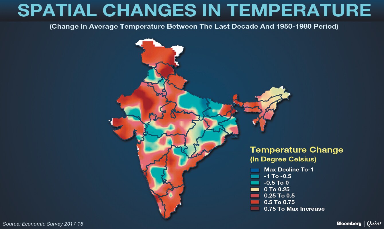 As India battles a rural distress, the Economic Survey warned that rising temperatures and poor rains threaten to hurt farmers' incomes.