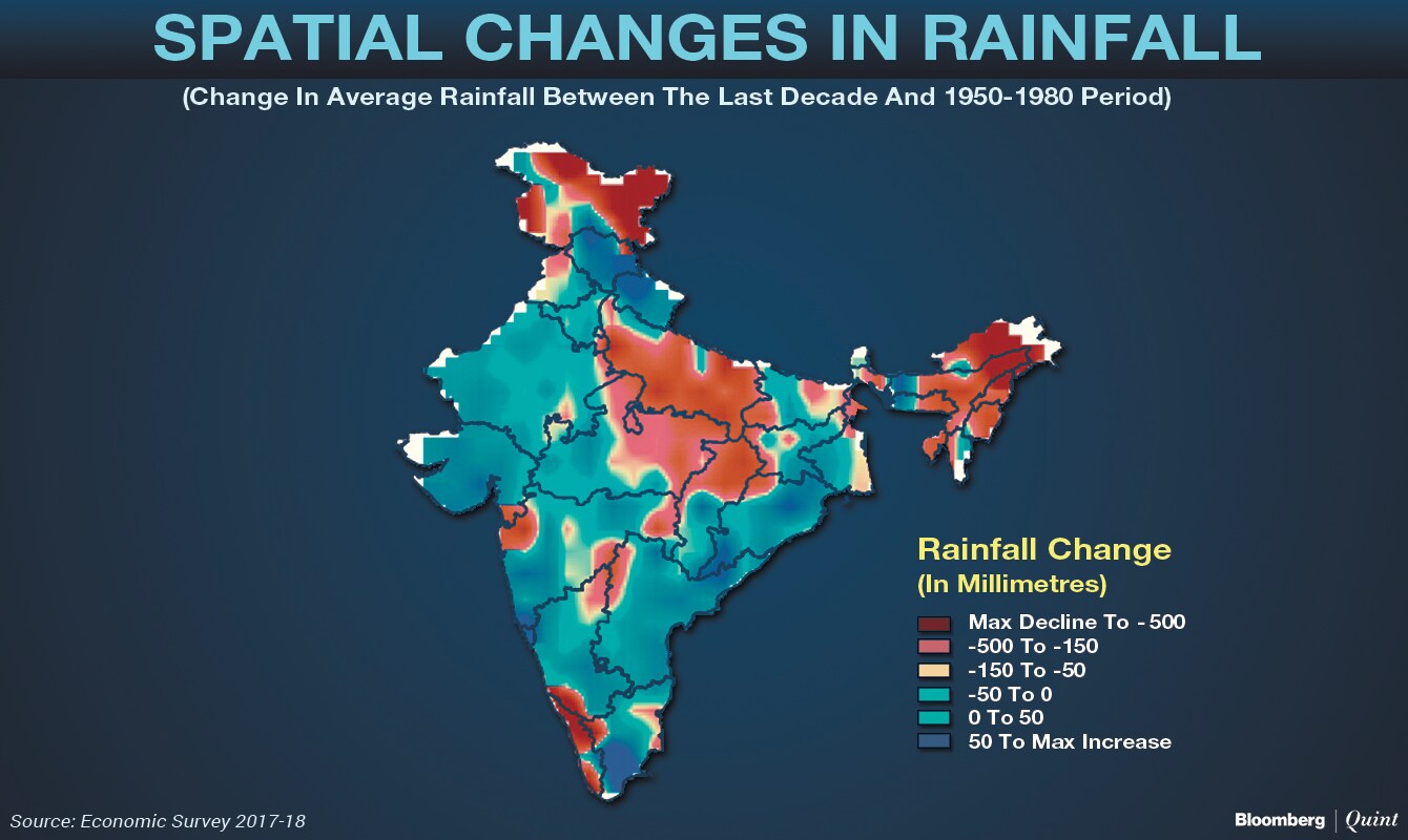 - Revenue from an average kharif crops falls 4 percent due to one-degree rise in temperature and nearly 13 percent due to 100 millimetres decline in rainfall, the survey said.