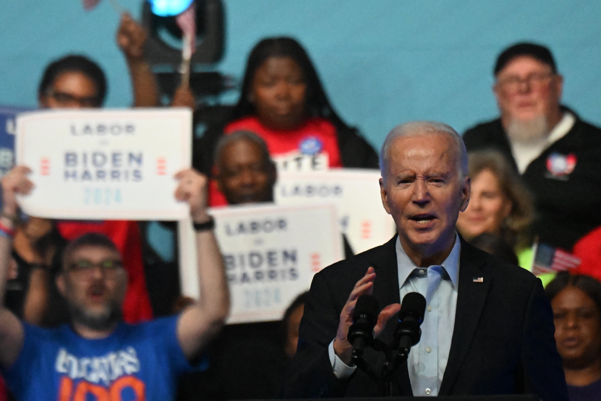 Joe Biden adressess union workers in Philadelphia, Pennsylvania in June.