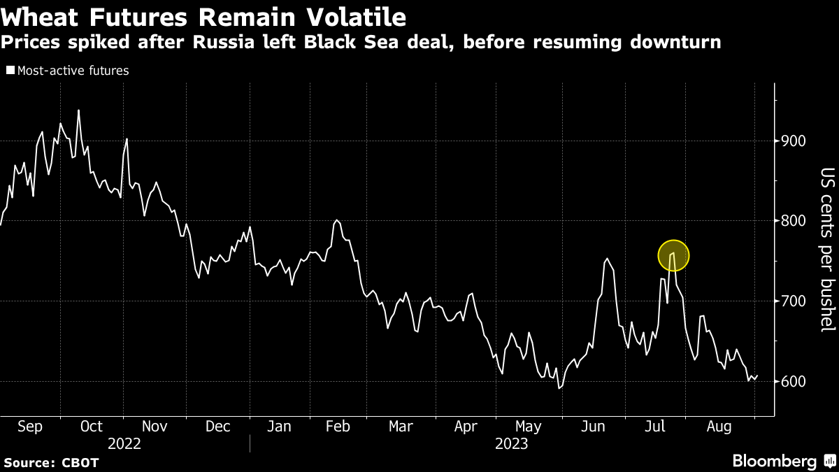 Uncertainty about the future of supplies from one of the world's largest grain exporters has contributed to weeks of volatility in global wheat prices, as has the surge in hostilities in and around the Black Sea.