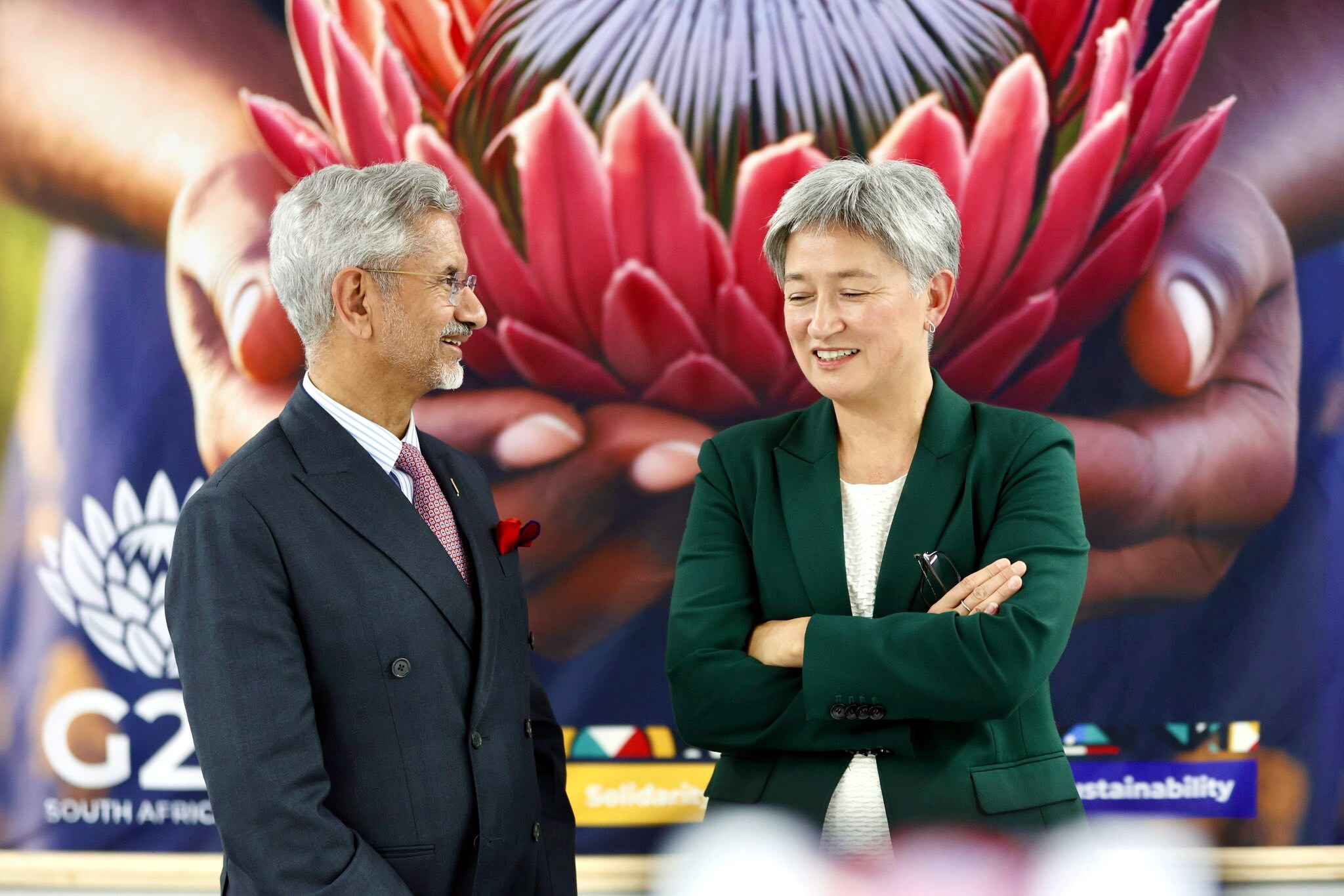 Union External Affairs Minister S Jaishankar with Australian Foreign Minister Penny Wong during G20 a meeting, in Johannesburg, South Africa. (Photo Source: DrSJaishankar on X via PTI Photo)