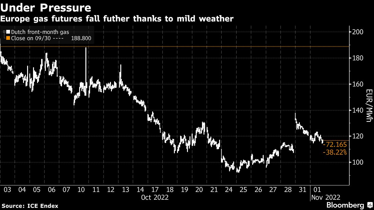 The mild weather is likely to extend into this month, with forecasters Maxar Technologies LLC and Marex expecting no cold spells in November. It comes as a relief for consumers worried about the cost of heating and for governments keen to ensure healthy gas stockpiles for as long as possible.