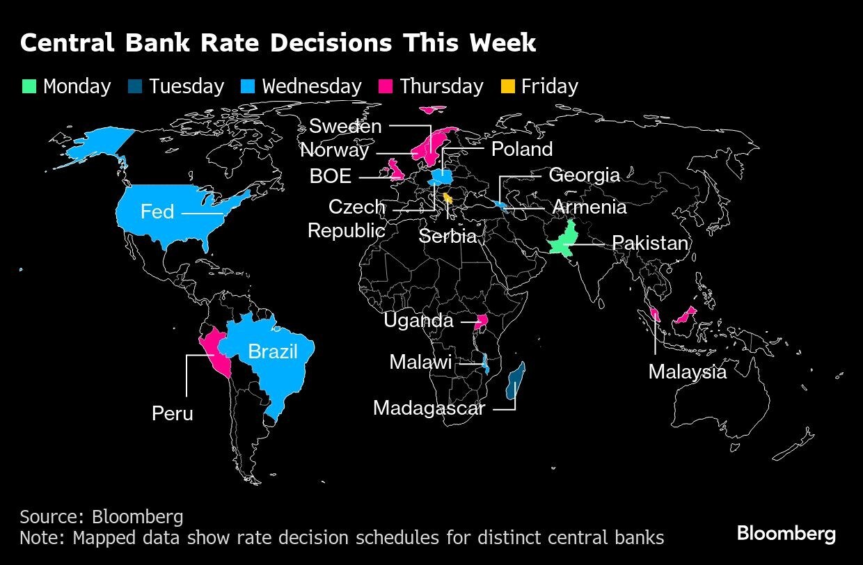 In Norway, central bankers are also anticipated to refrain from a rate move, in line with their March projection for just two cuts this year, most likely starting in September. Governor Ida Wolden Bache has said that not all of a recent inflation pickup looks temporary. The nation has little direct trade exposure to the US, but officials worry about the knock-on effects of a global tariff war.