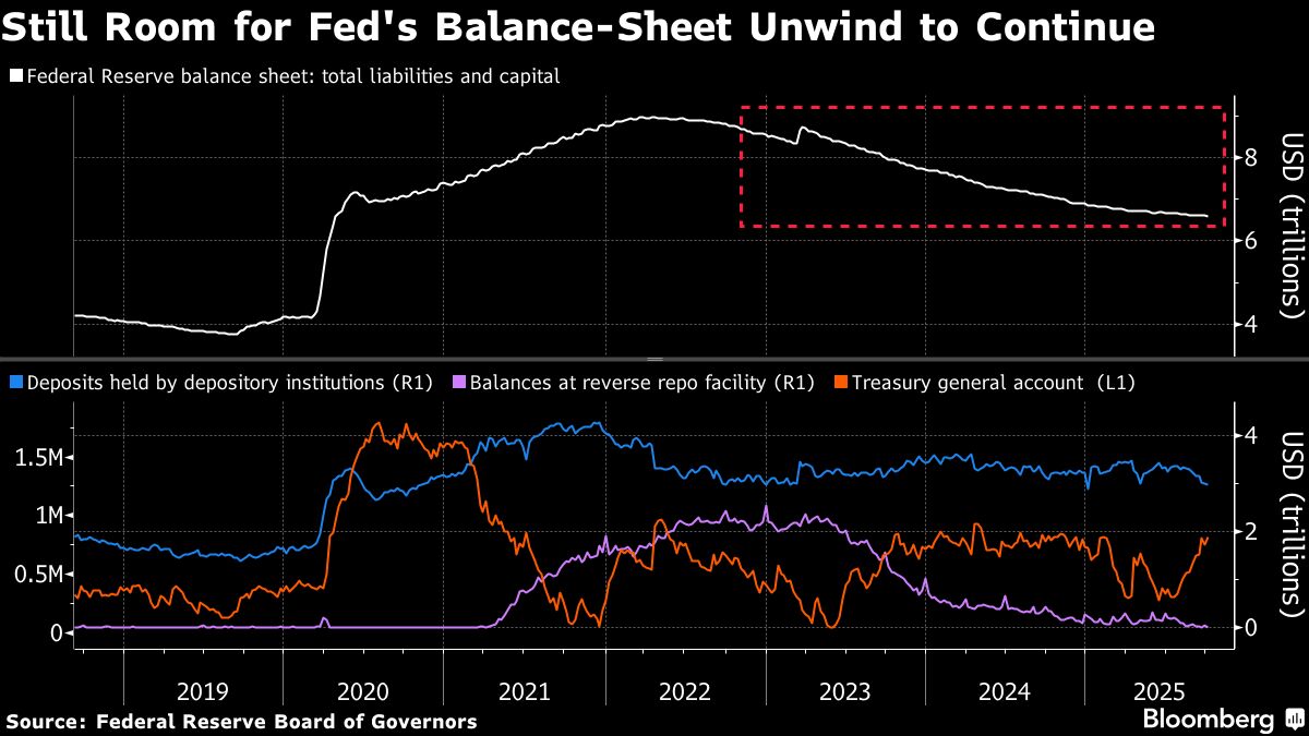 During the meeting, Julie Remache, deputy manager of the System Open Market Account, noted that if the balance-sheet runoff were to continue at the current pace, the Fed's portfolio is expected to decline to just over $6 trillion by the end of March. As a result, Remache expected reserves to be close to the $2.8 trillion range by the end of March 2026.
