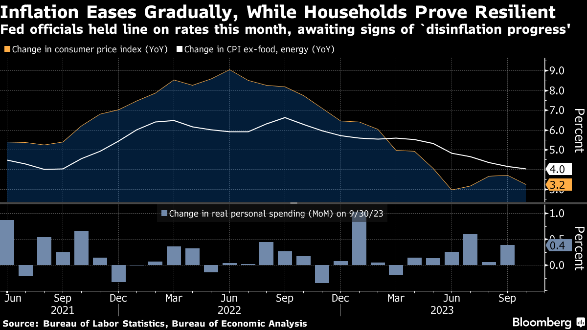 GDP rose at an annualized rate of 4.9% in the third quarter, the fastest pace in almost two years. Job gains remain strong, while inflation, measured by the Fed's preferred price indicator, is cooling.
