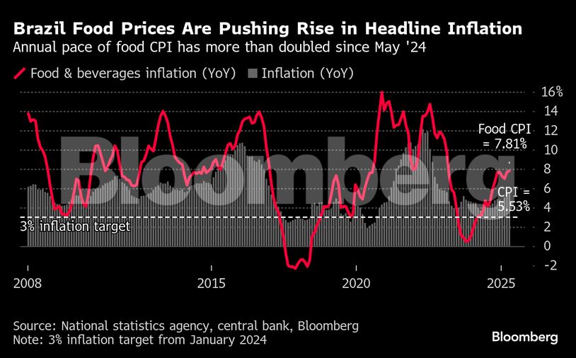 Brazil's mid-month consumer price report posted Tuesday is the second-to-last inflation reading before the central bank's June meeting. The April CPI figures point to pressure on headline prints from rising food costs