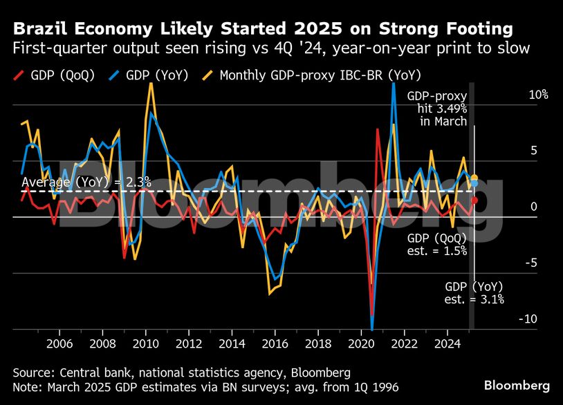 Closing out the week, Brazil on Friday posts first-quarter output data. Latin America's No. 1 economy is widely forecast to slow in 2025 after three years of growing at 3% or better, though it may be hard to see in the week's data.