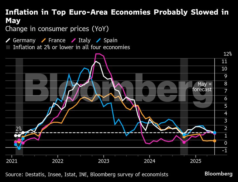 If the surveys are accurate, May will mark the first time in eight months, and only the second time since 2021, that annual consumer-price growth hasn't exceeded the ECB's 2% goal in any of those countries.
