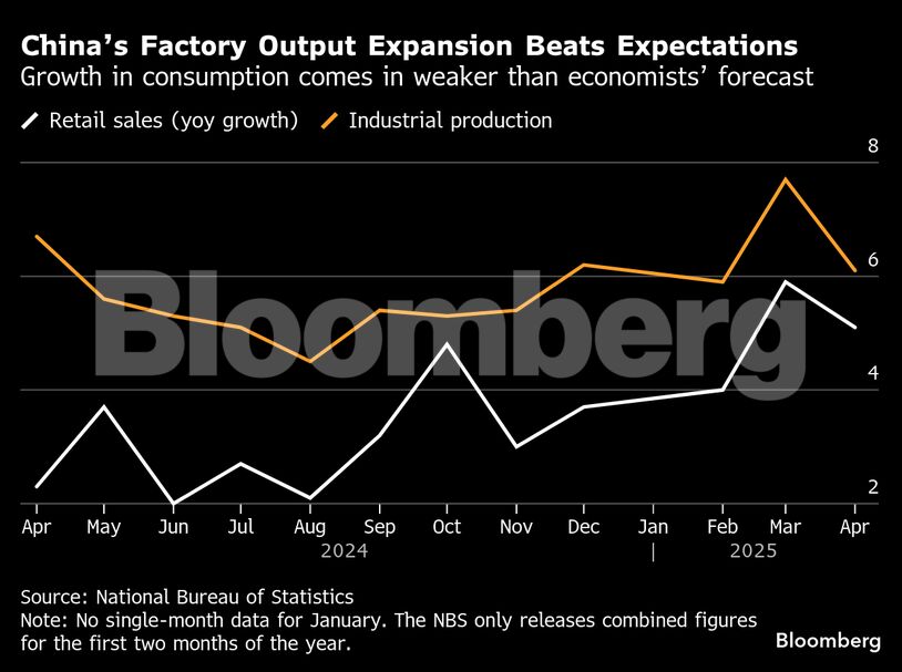 Production across the region, the world's factory floor, will also be in focus. China on Tuesday is set to report industrial profits for April, an area under increased pressure as deflation and the trade war weigh. India releases industrial production figures on Wednesday, which are forecast to have slowed. And South Korea and Japan report April industrial production on Friday that are also expected to slow — and in Japan's case contract — as demand wanes